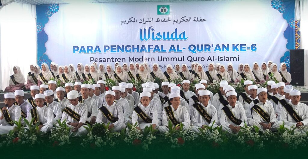 Sebanyak 99 santri Pesantren Modern Ummul Quro Al-Islami (PMUQI) mengikuti prosesi Wisuda Tahfidz 2025 yang diselenggarakan pada Sabtu pagi (20/4/2025) di Basement Masjid Jami Ummul Quro Al-Islami. Kegiatan ini merupakan bentuk apresiasi kepada para santri tahfidz yang telah berhasil menghafal Al-Qur’an minimal 5 juz.