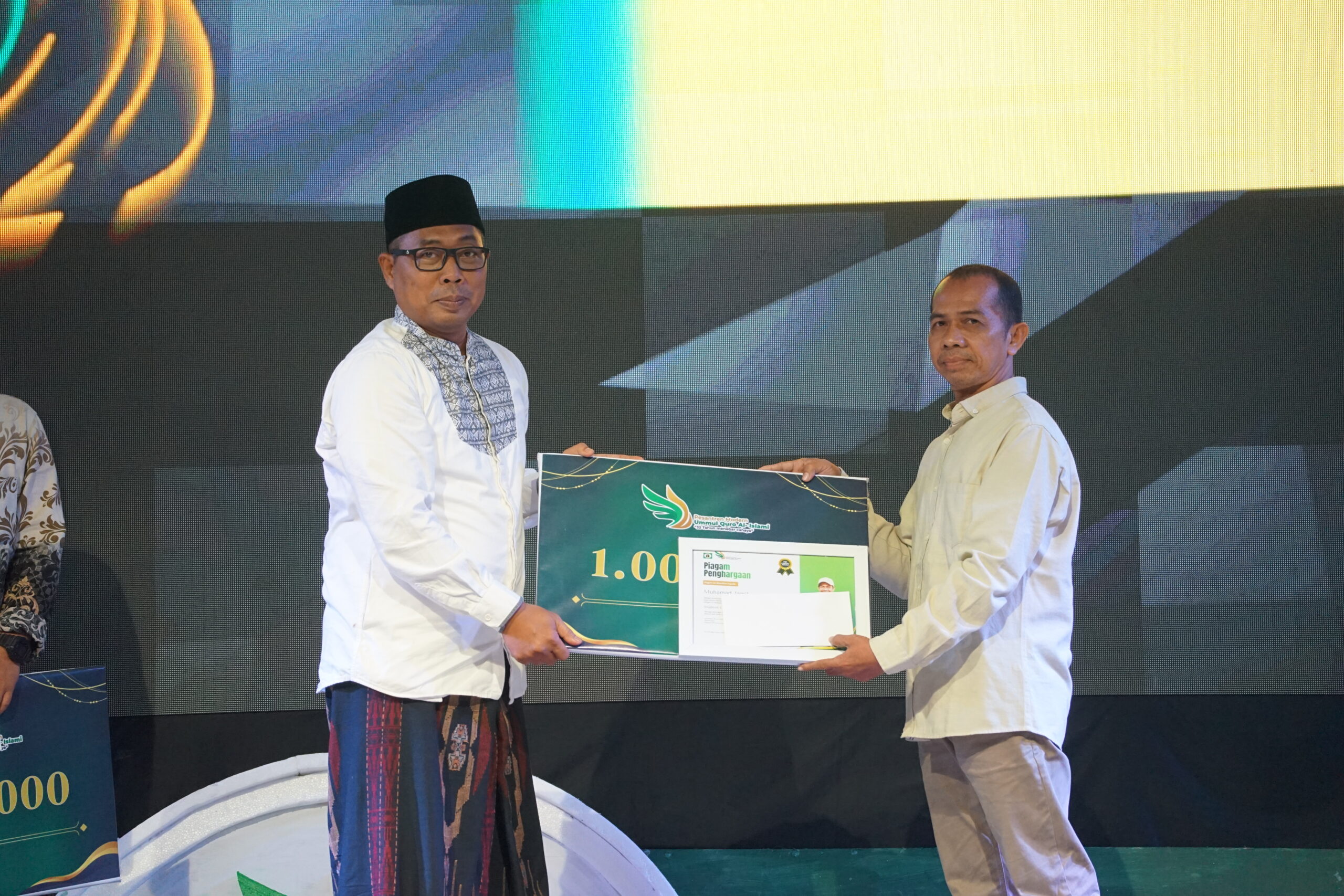 Penghargaan juga diberikan kepada ustaz dan wali santri yang aktif mempromosikan pesantren melalui media sosial. Momen paling mengharukan adalah saat Lifetime Achievement Award dianugerahkan kepada Bapak Mad Sholeh, supir pribadi KH. Helmy Abdul Mubin, Lc., atas pengabdian dan kesetiaannya yang panjang.